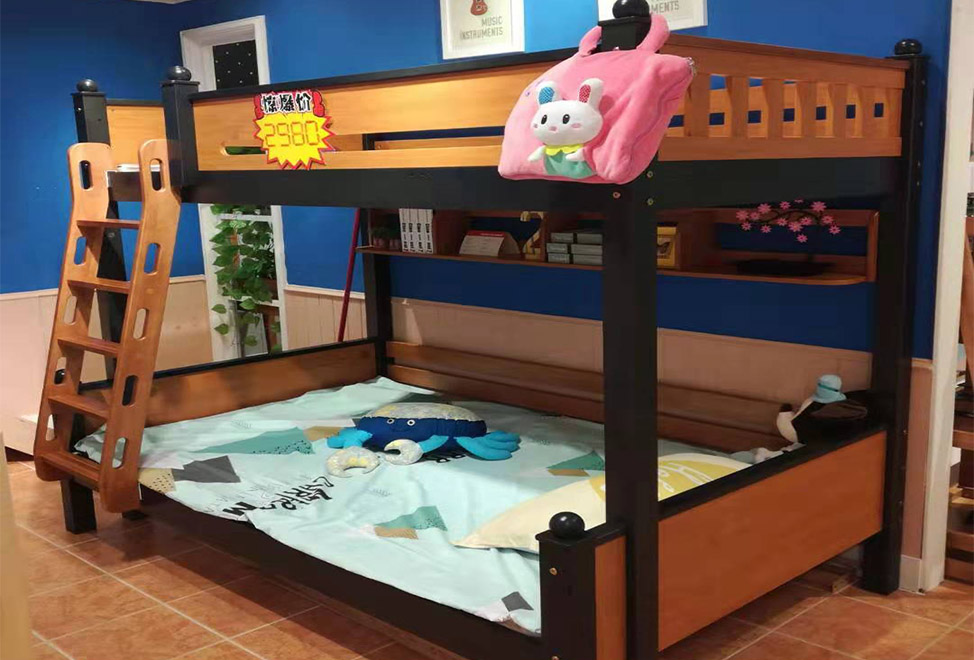 【东方森林】上下床橡木 1.0或1.2×1.9带床垫床中书架
